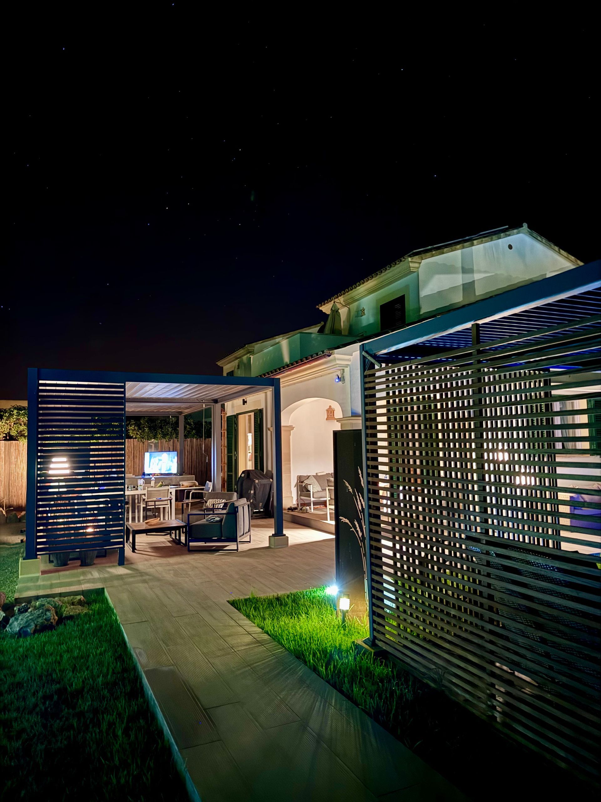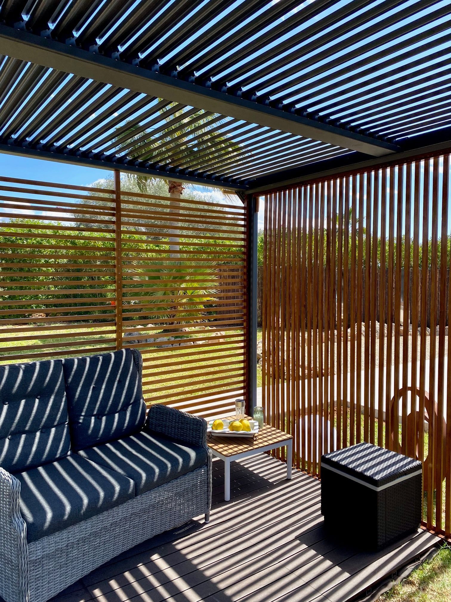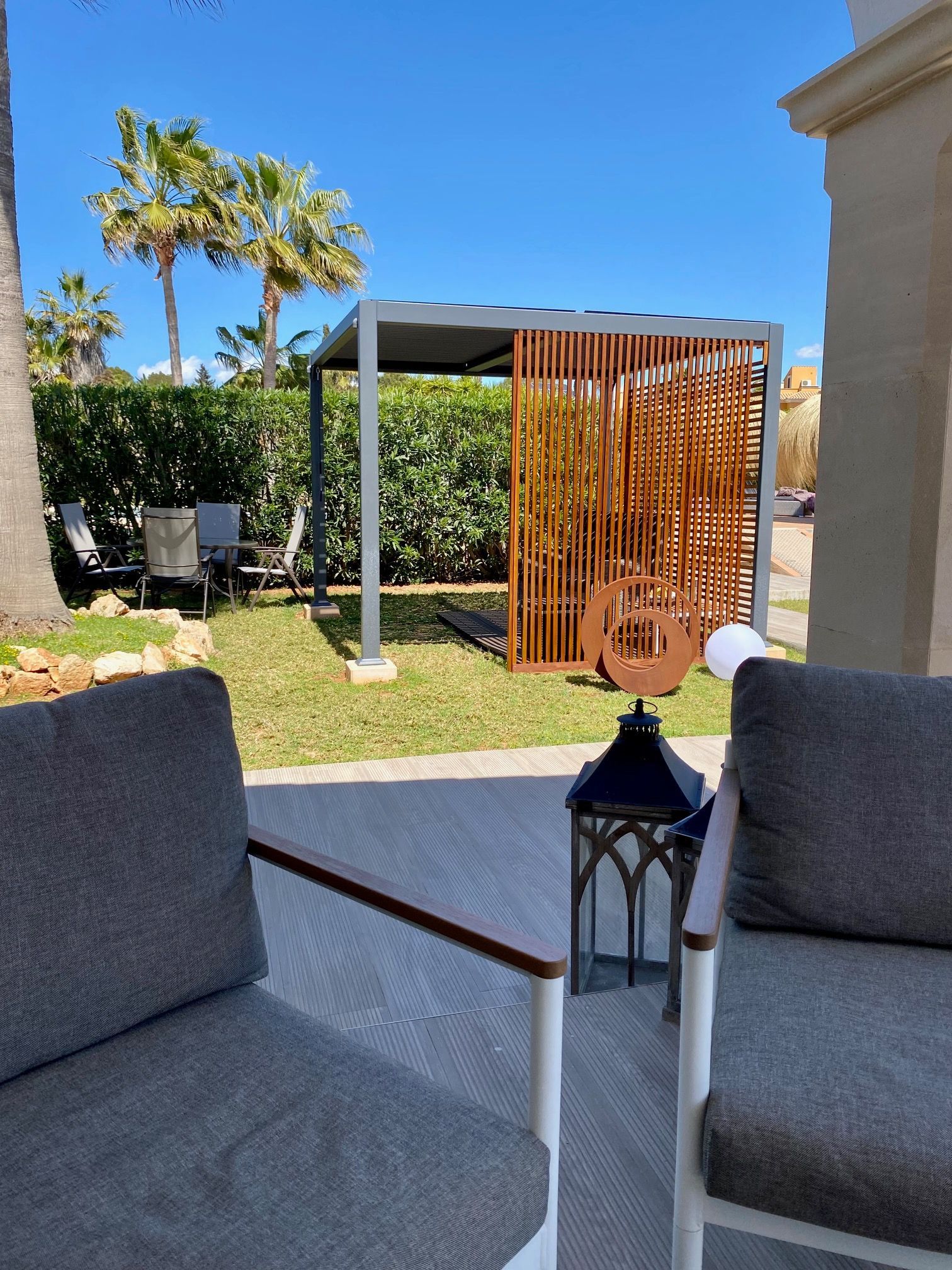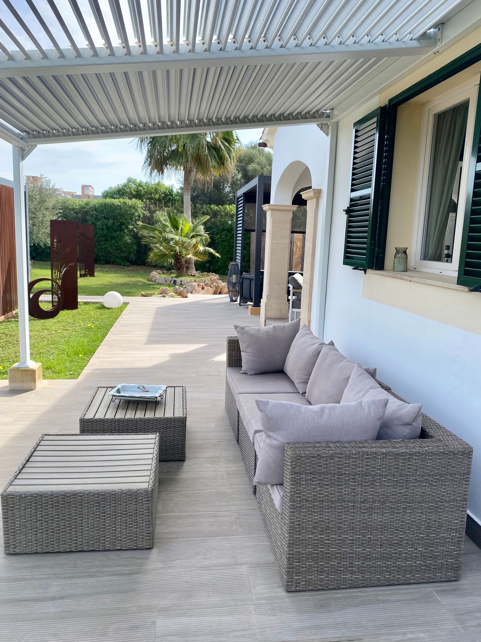 - großzügiger überdachter Terrassenbereich mit mehreren Loungebereichen und einer modernen Außenküche
