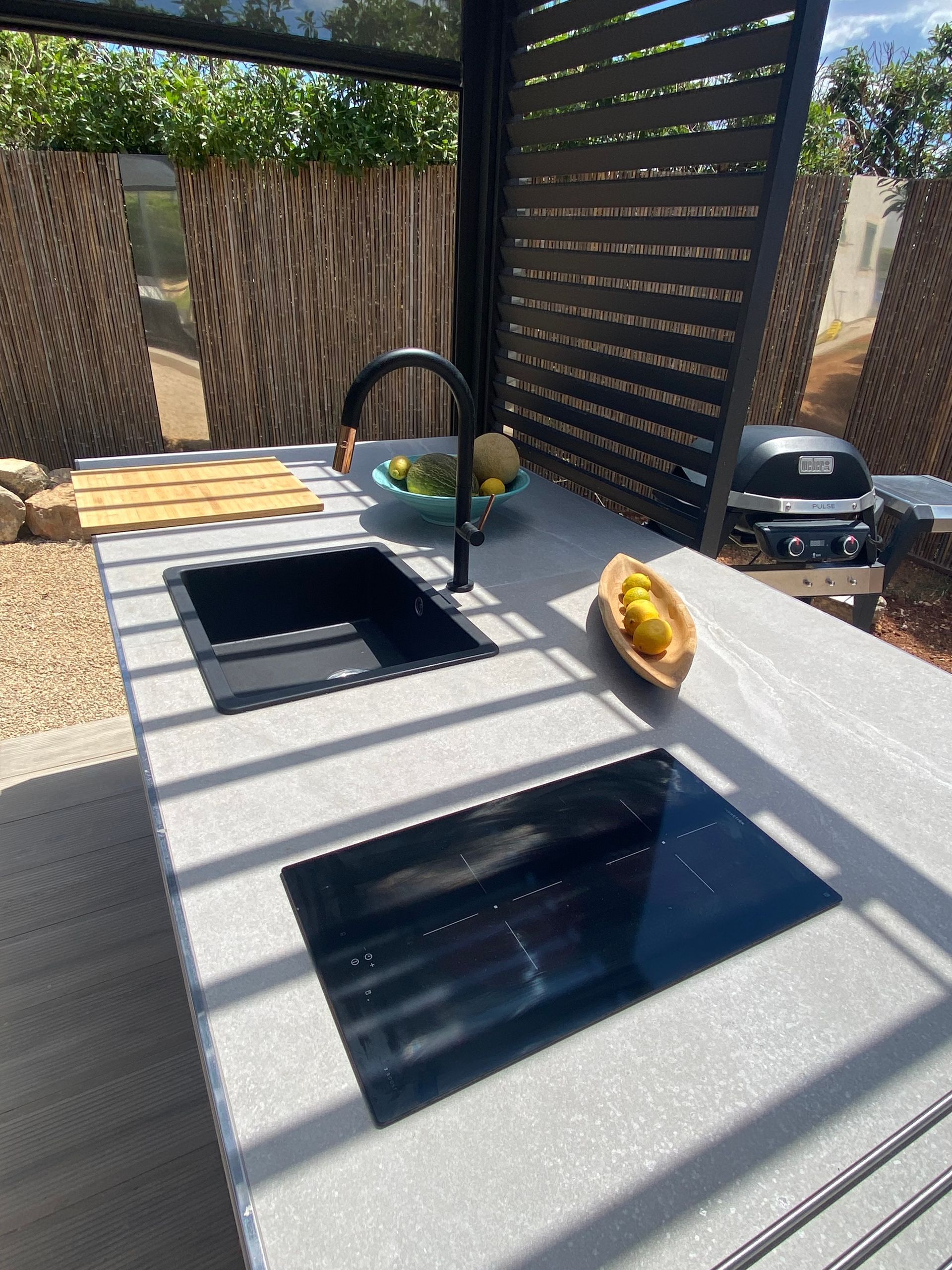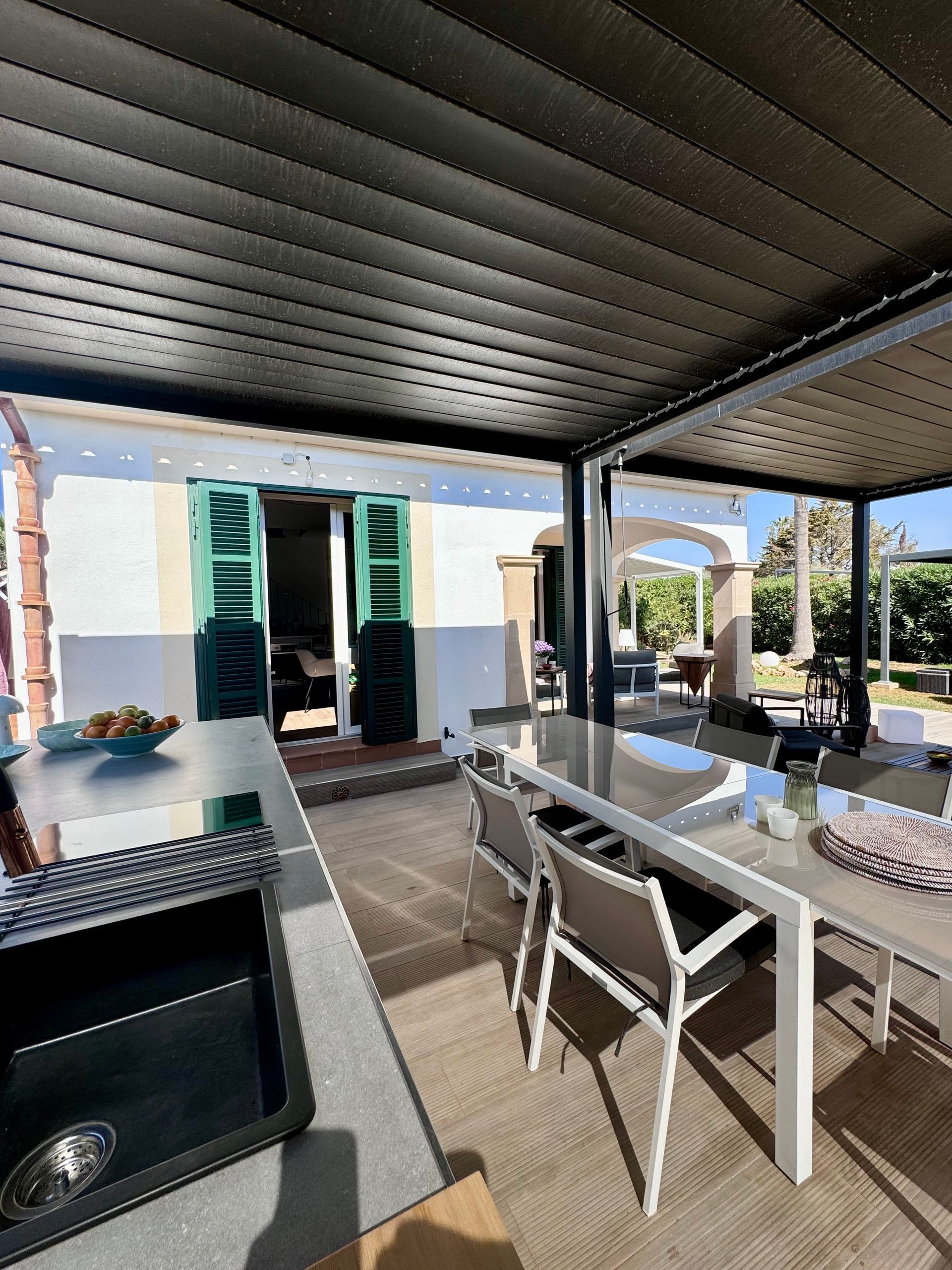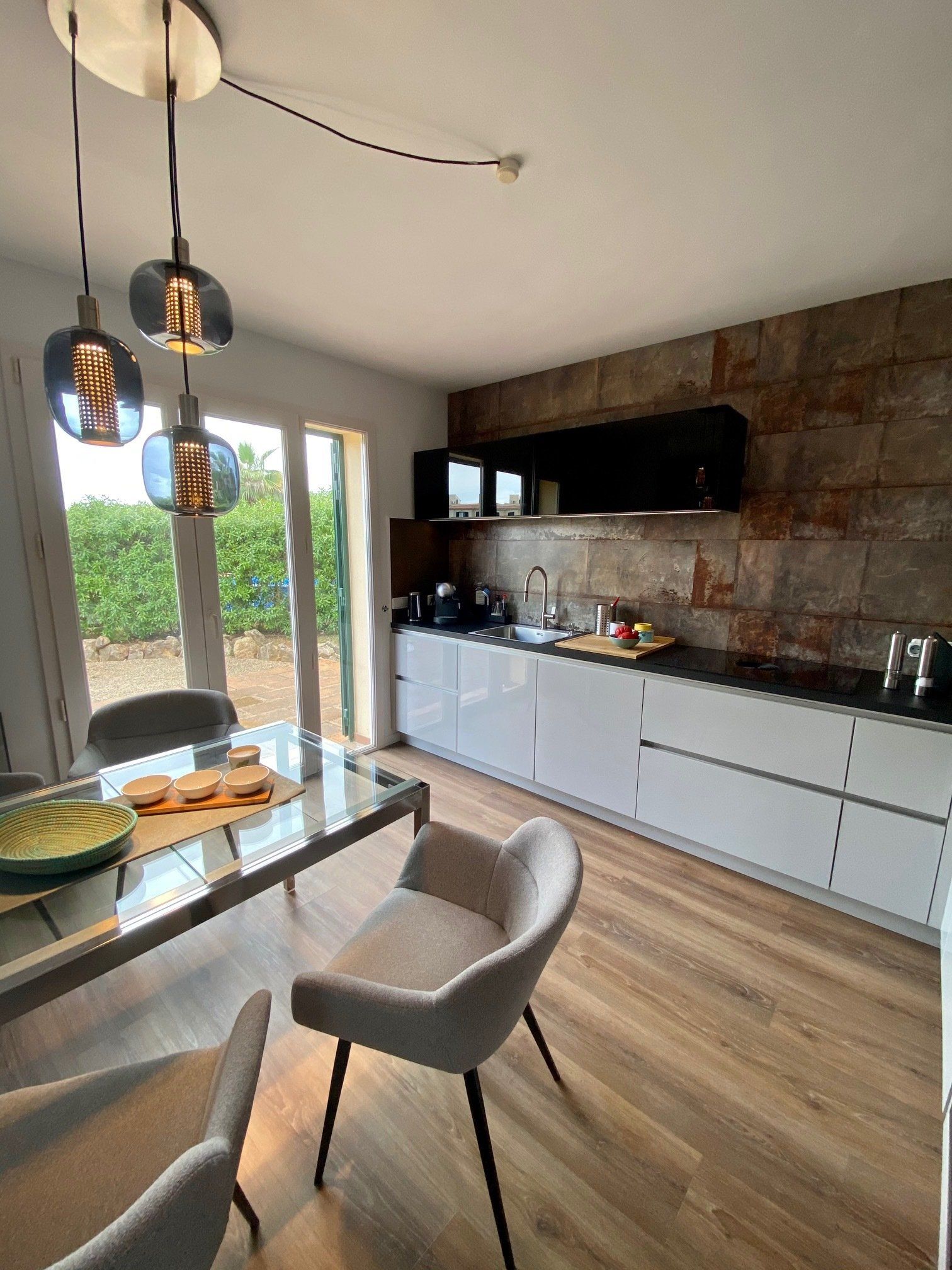- moderne Küche mit Essbereich und Ausgang zur großzügigen überdachten Terrasse