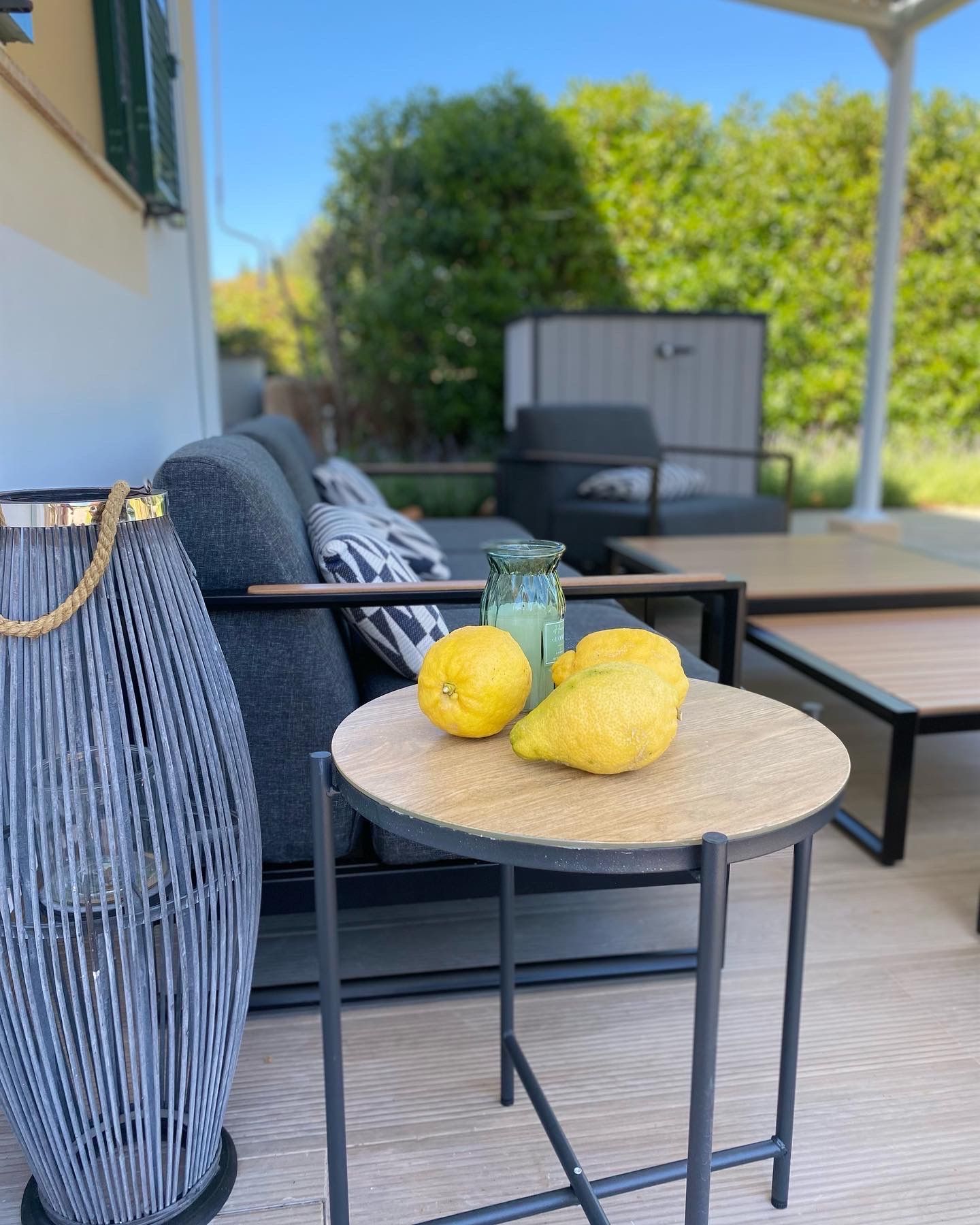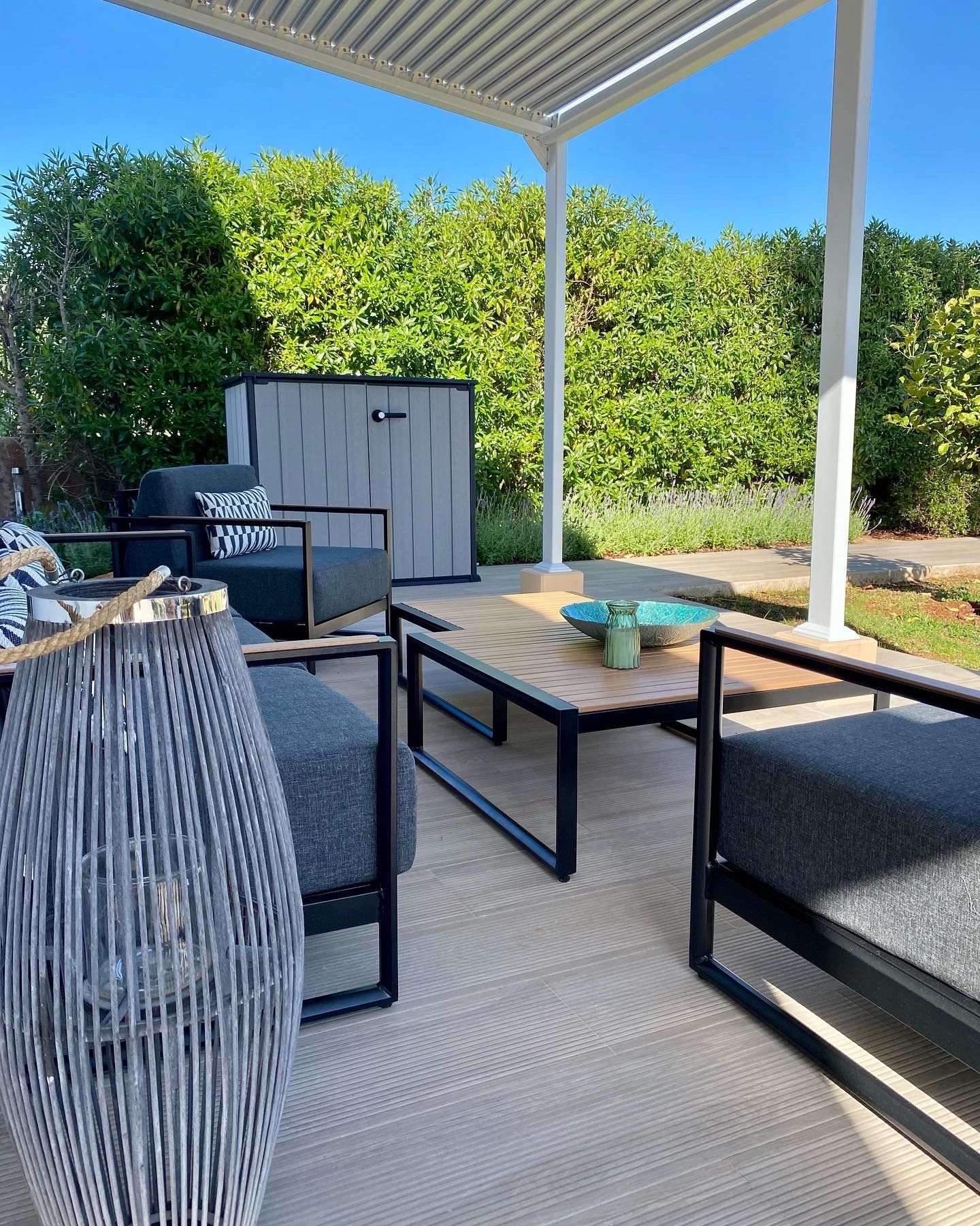 - großzügiger überdachter Terrassenbereich mit mehreren Loungebereichen und einer modernen Außenküche