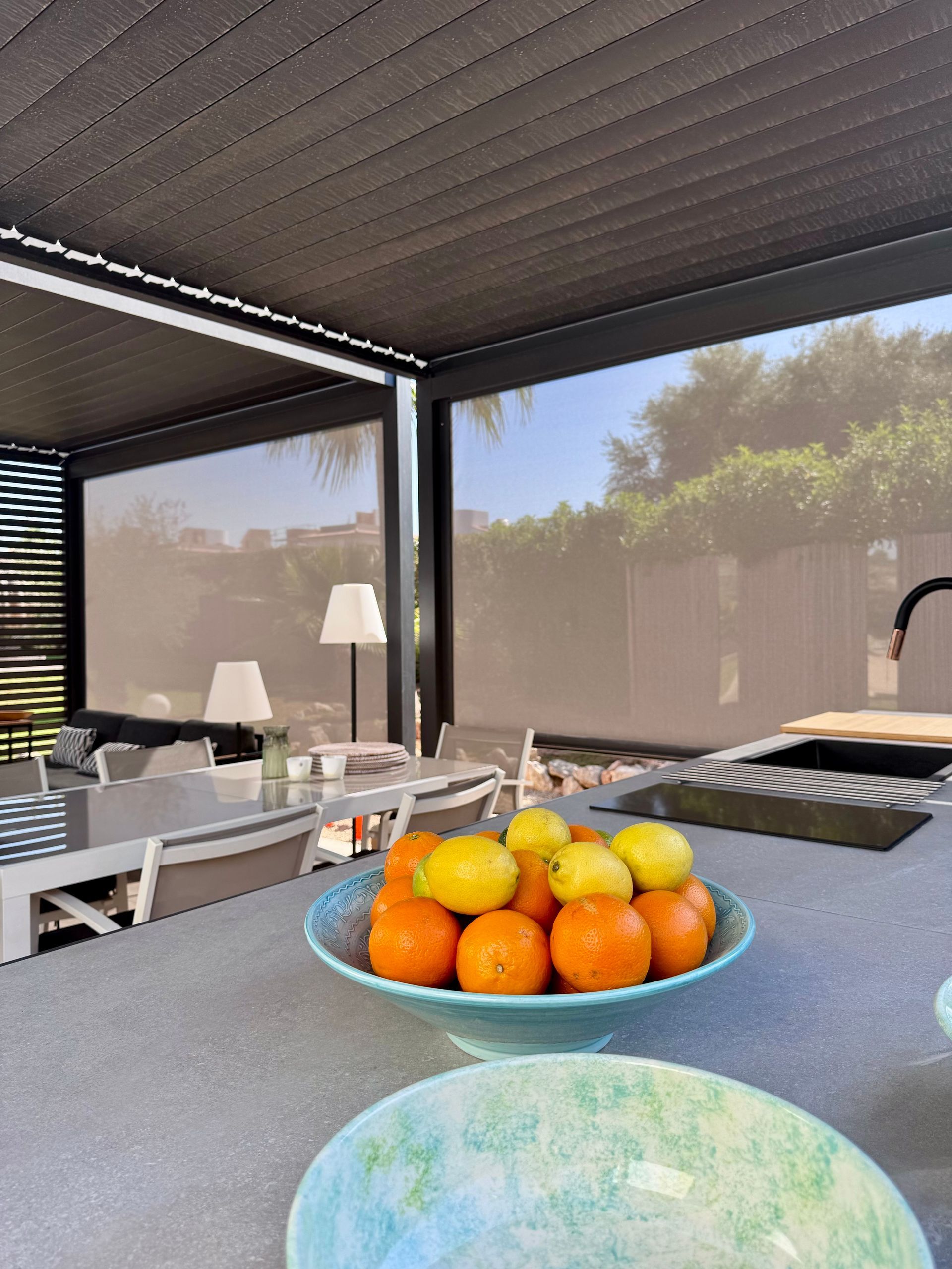 Saftpresse, Smoothie- und Sandwichmaker, Wasserkocher, Toaster, Eismaschine uvm. - Bioklimatische Pergolas rund um das Haus, im Garten und am Pool