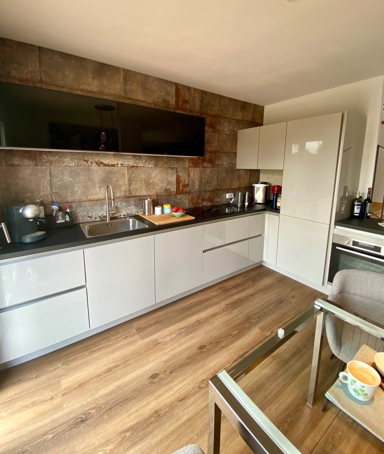 - voll ausgestattete Küche mit Mikrowelle, Geschirr, Besteck, Gläsern, Töpfen, Pfannen, Nespresso, Filterkaffeemaschine,